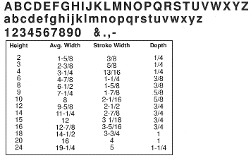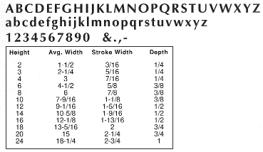 The traditional look and highly prestigious appeal of cast letters enhances the image of any organization. The popular letter styles and our high quality ensure attractive results regardless of which metal or finish is specified. A baked-on polyurethane protective coating preserves the finish. Our most popular letter styles are pictured below. However, other styles are available. Please note: If lower case letters are not shown, they are not available without pattern charges. All dimensions are shown in inches.
